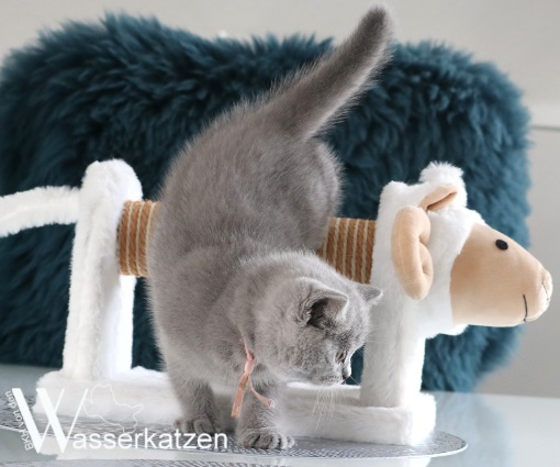 B, trägt chocolate, ist reinerbig Kurzhaar.
